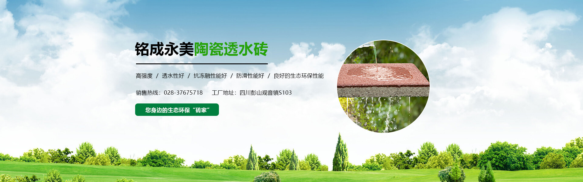 四川銘成永美環保科技有限公司(www_mcotcn_com.flowerspastry.cn)是國內非常早研究探索海綿城市的企業之一,公司主導產品:海綿城市鋪路磚家---銘成永美生態陶瓷透水磚已在全國多個重點項目使用。公司透水混凝土、雨水收集利用系統正在全國推廣。公司將整合海綿城市規劃設計、污水處理、污泥利用、環保設備、社會資本等海綿城市相關產業。為解決城市“熱島效應”、地表硬化,防止城市內澇,營造高質量的自然生態環境,改善城市生態平衡而不斷努力!公司將充分利用現有的互聯網資訊平臺,整合生態海綿城市產業鏈,打造集互聯網、科研、生產、銷售、規劃設計、PPP項目營運、工程施工為一體的綜合性環保科技公司,已初步建立覆蓋全國的業務團隊和渠道。
